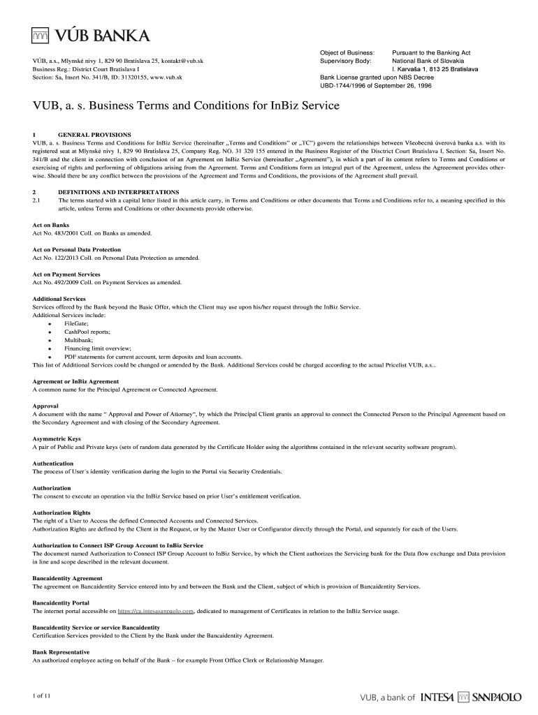 Section: SA, Insert No. 341/B, ID: 31320155, www.vub.skObject of Business:
