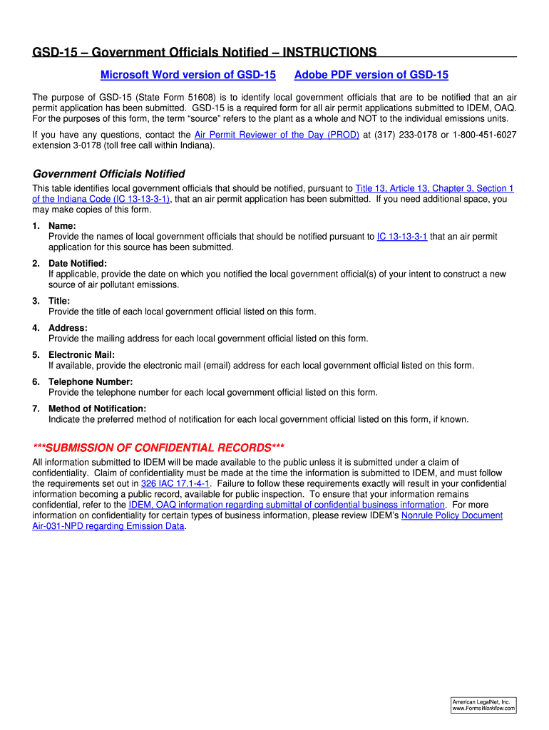 GSD15 Government Officials Notified INSTRUCTIONS Microsoft Word version of GSD15Adobe PDF version of GSD15The purpose of GSD15 (State Form 51608) is to identify local government officials that are