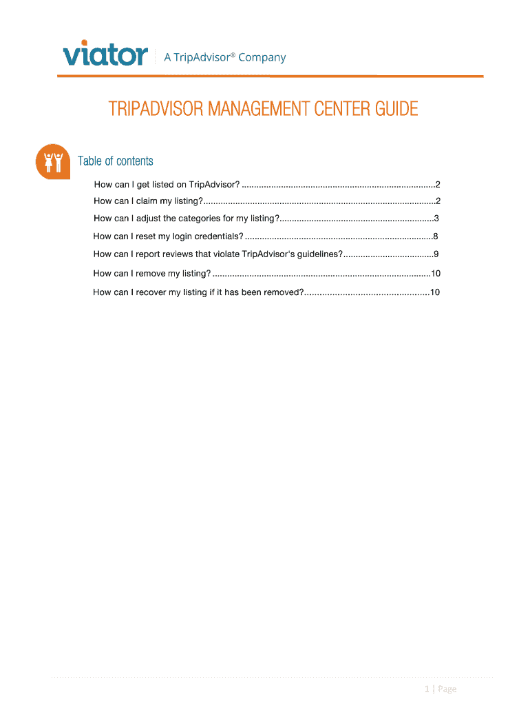Fill out your tripadvisor management center guide online with pdfFiller!