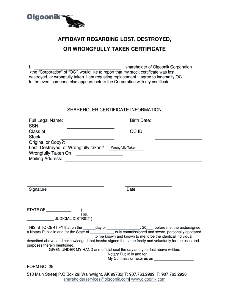 OR WRONGFULLY TAKEN CERTIFICATE
