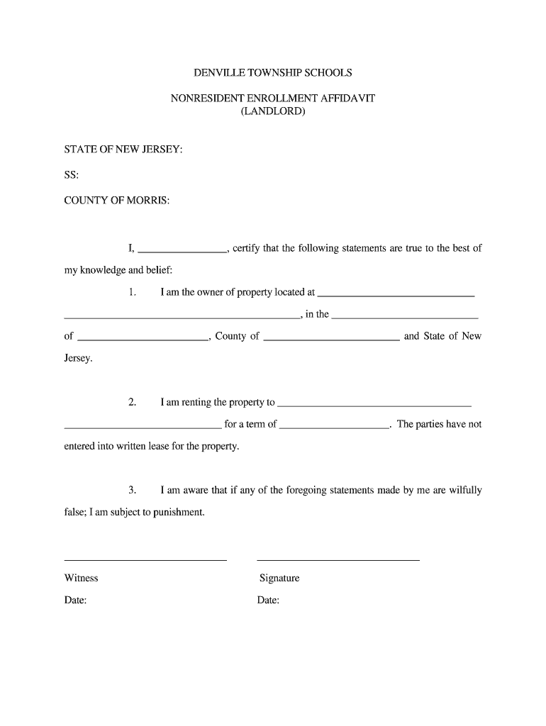 DANVILLE TOWNSHIP SCHOOLS NONRESIDENT ENROLLMENT AFFIDAVIT (LANDLORD)STATE OF NEW JERSEY: SS: COUNTY OF MORRIS:I, certify that the following statements are true to the best of my knowledge and belief: