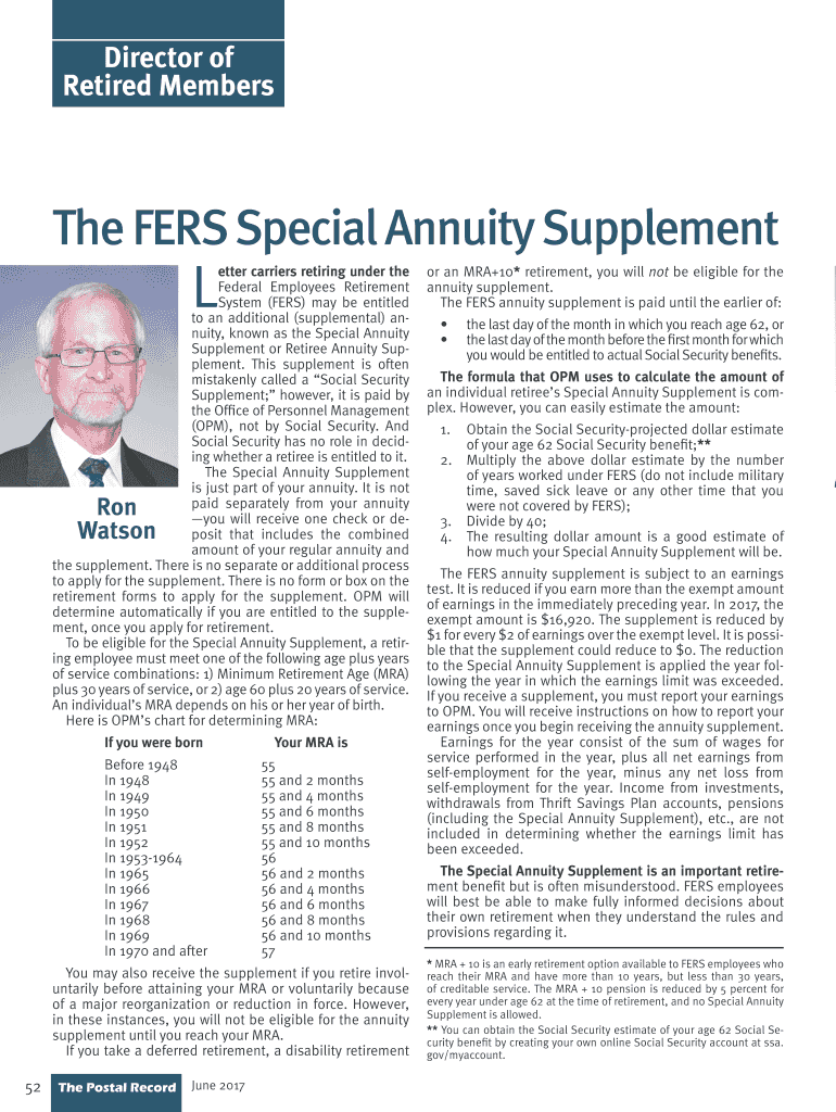 Retired Members FEES Special Annuity SupplementLetter carriers retiring under the
