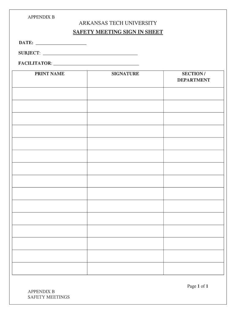 Get the free safety meeting sign in sheet pdf