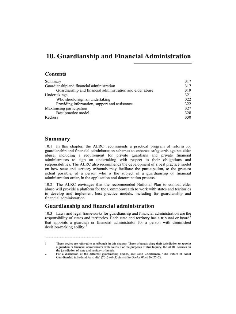 Get the free Guardianship and financial administration and elder abuse