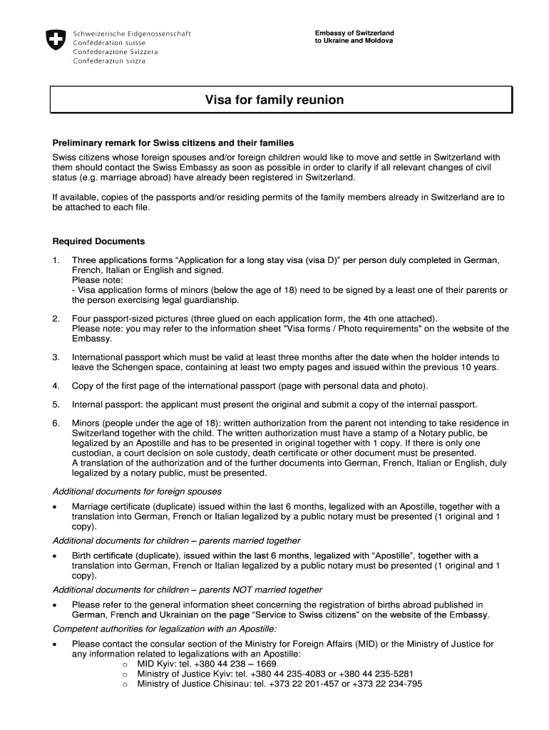 to Ukraine and Moldova Visa for family reunionPreliminary remark for Swiss citizens and their families