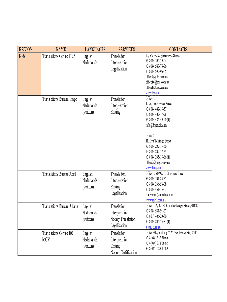 Get the free Translations Centre TRIS