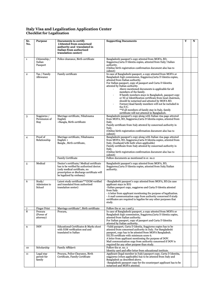 It is always recommended to check the official website of the Italian Embassy or Consulate in your country for the most accurate and up-to-date information regarding visa and legalization requirements.
