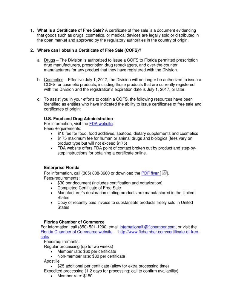 1. What is a Certificate of Free Sale? A certificate of free sale is a document evidencing that goods such as drugs, cosmetics, or medical devices are legally sold or distributed in the open market