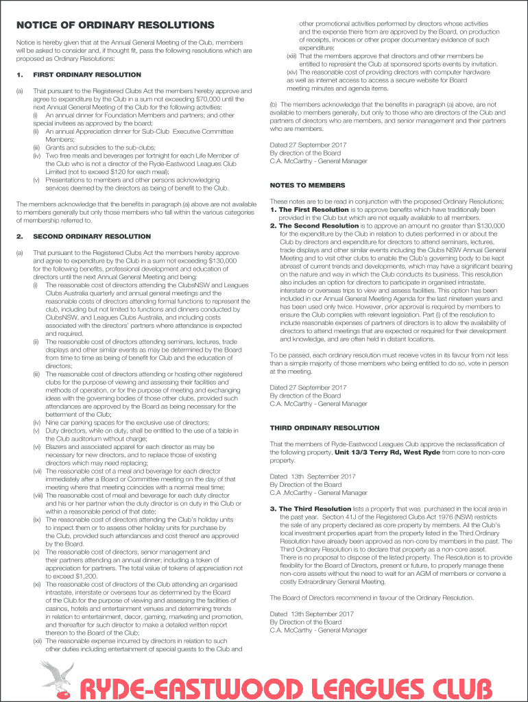 Notice of ordinary resolutions is a formal document that informs shareholders of upcoming decisions that will be voted on during a company's annual general meeting.