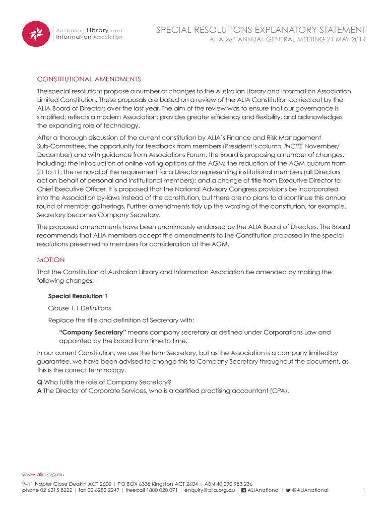 The special resolutions propose a number of changes to the Australian Library and Information