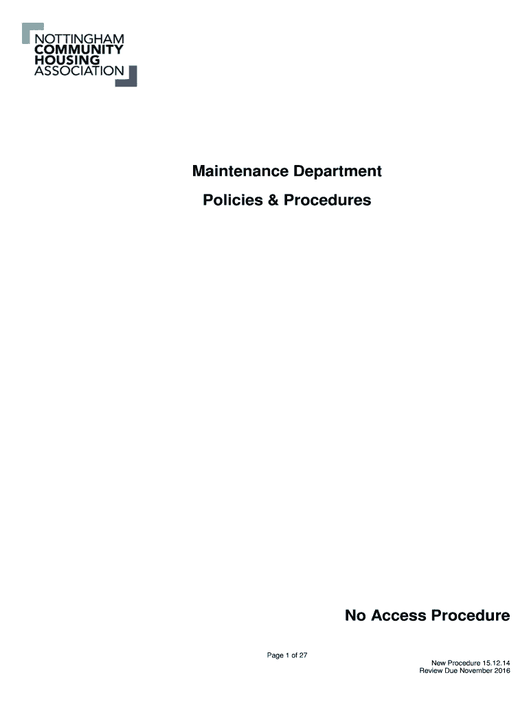 Maintenance Department Policies & Procedures No Access Procedure Page 1 of 27 New Procedure 15.12.14 Review Due November 2016No Access Procedure 1. Introduction The intention of this procedure is