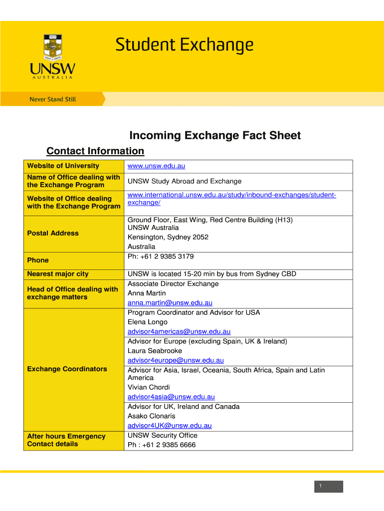 Student ExchangeIncoming Exchange Fact Sheet
