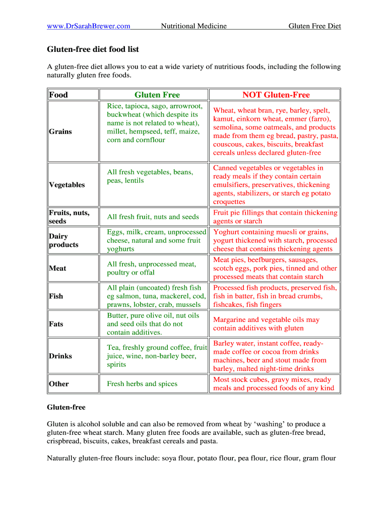 WWW. DrSarahBrewer.computational MedicineGluten Free DietGlutenfree diet food list