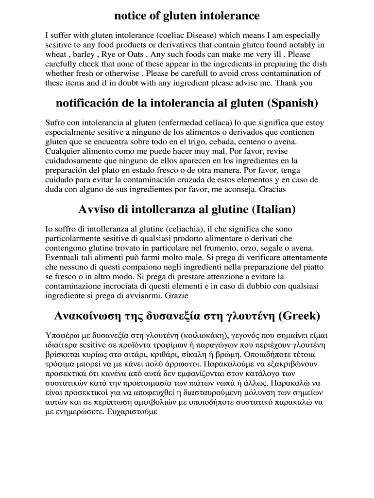 Anyone who has been diagnosed with gluten intolerance and requires documentation to inform others, such as employers, schools, or healthcare providers, about their condition.