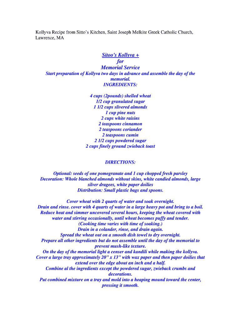 Get the free Kollyva Recipe from Sittos Kitchen, Saint Joseph Melkite Greek Catholic Church,