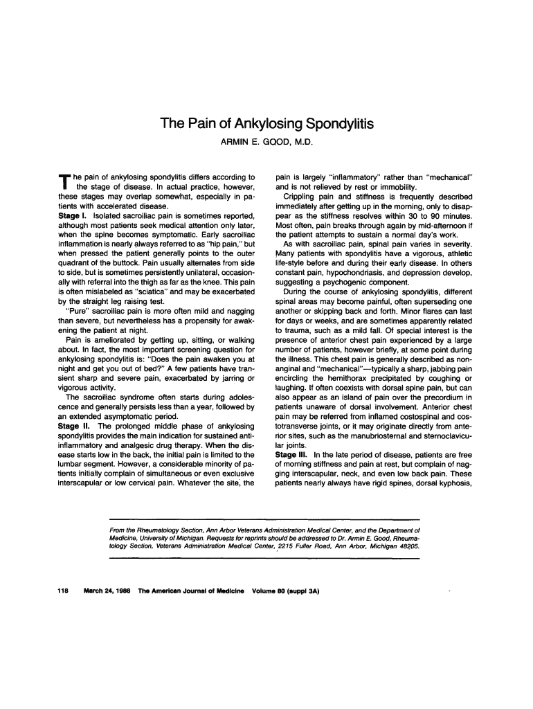 ARMIN E. GOOD, M.D.he pains of ankylosing spondylitis differs according to