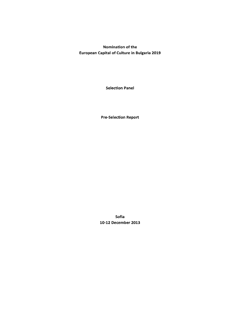 European Capital of Culture in Bulgaria 2019Selection PanelPreSelection Report Sofia
