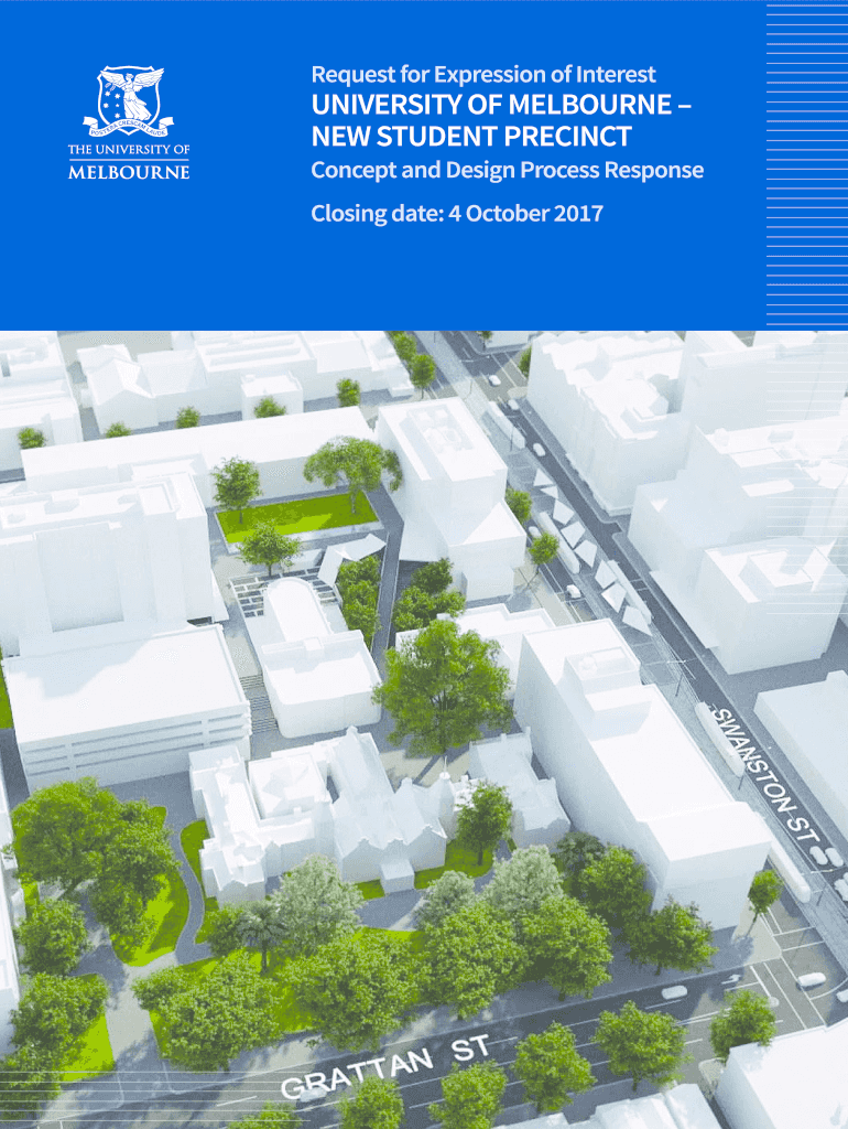 Request for Expression of InterestUNIVERSITY OF MELBOURNE NEW STUDENT PRECINCTConcept and Design Process Response Closing date: 4 October 20171.INTRODUCTION 1.1New Student Precinct The New Student