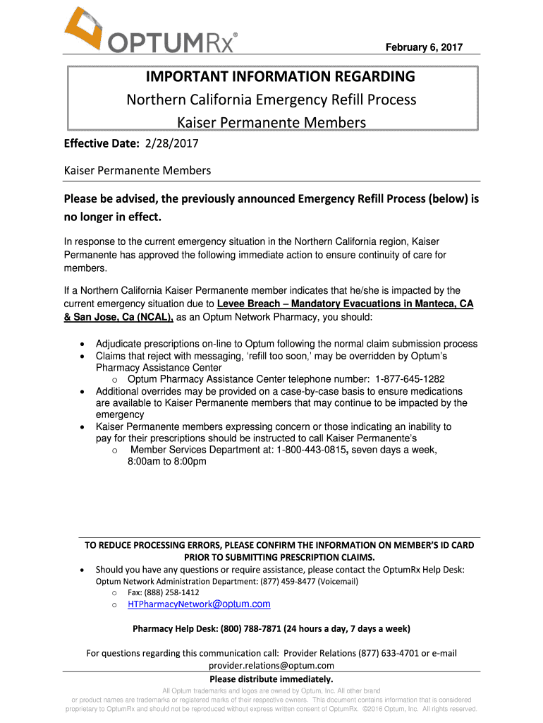 Get the free Northern California Emergency Refill Process