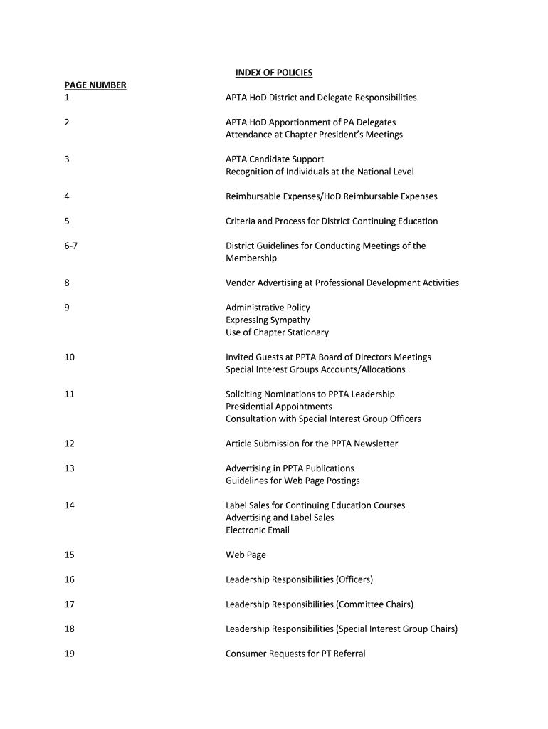 Attendance at Chapter Presidents Meetings3APTA Candidate Support