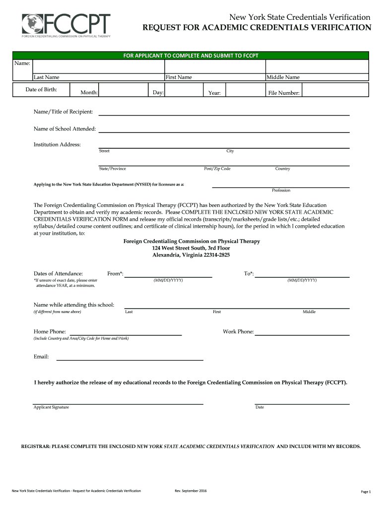 REQUEST FOR ACADEMIC CREDENTIALS VERIFICATION APPLICANT TO COMPLETE AND SUBMIT TO FCC PT