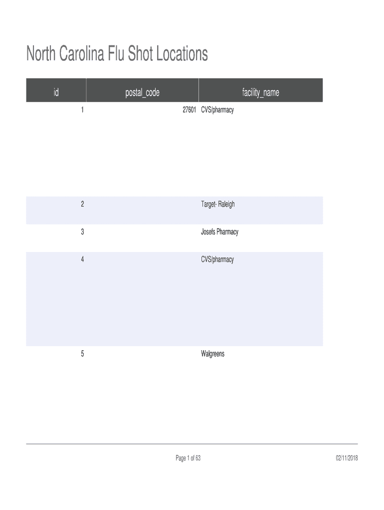 27601CVS/pharmacy2Target Raleigh3Josefs Pharmacy4CVS/pharmacy5WalgreensPage 1 of 6302/11/2018North Carolina Flu Shot Locations