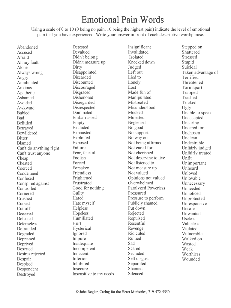 Anyone who is experiencing emotional pain can benefit from using emotional pain words.