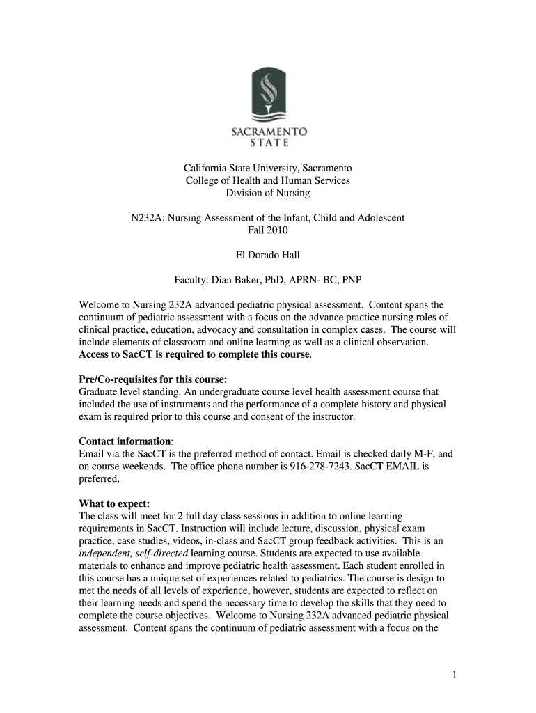Get the free N232A: Nursing Assessment of the Infant, Child and Adolescent