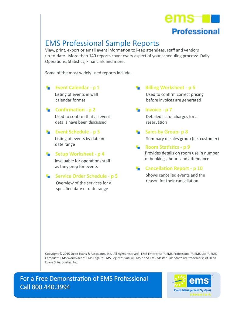 Get the free EMS Professional Sample Reports
