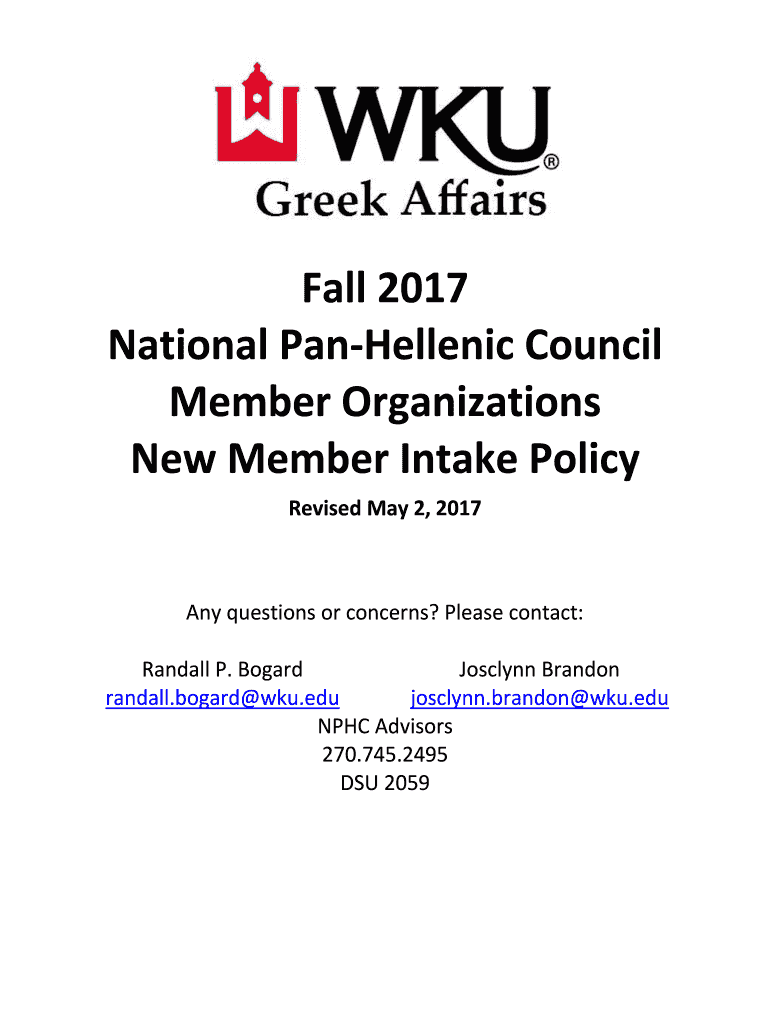 The organization or group that is admitting new members is required to file the new member intake policy.