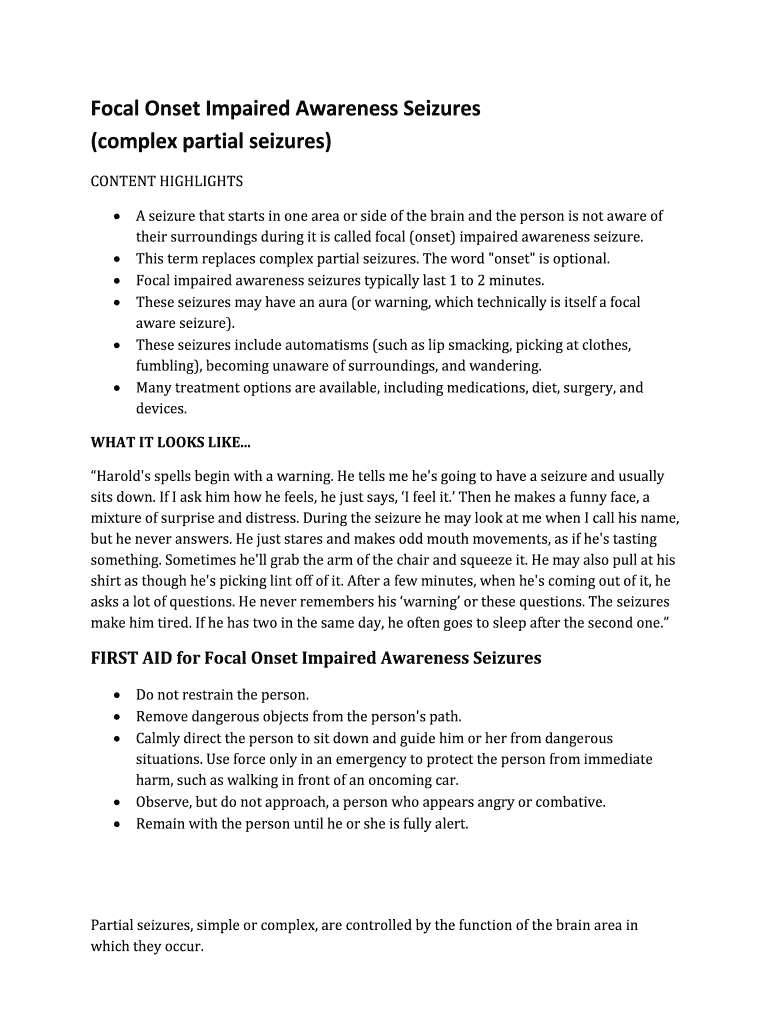 Get the free Focal Onset Impaired Awareness Seizures