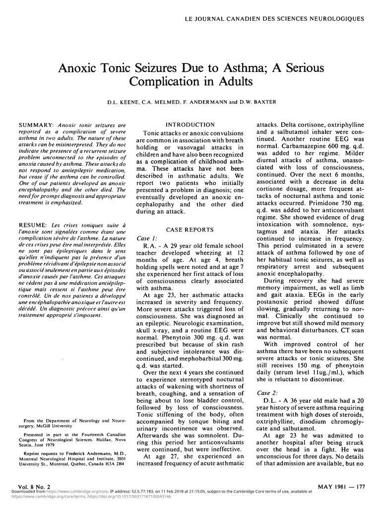 Get the free anoxic tonic seizures due to asthma