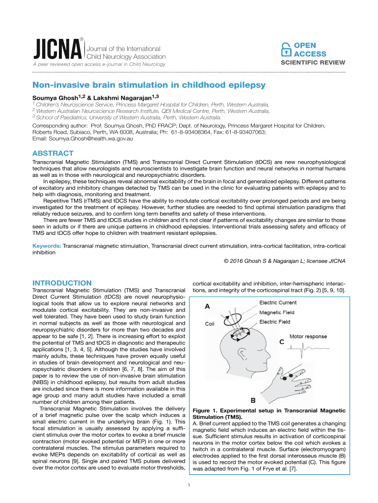 JICNAOPEN ACCESSJournal of the International Child Neurology AssociationSCIENTIFIC REVIEW peer reviewed open access journal in Child NeurologyNoninvasive brain stimulation in childhood epilepsy Sonya