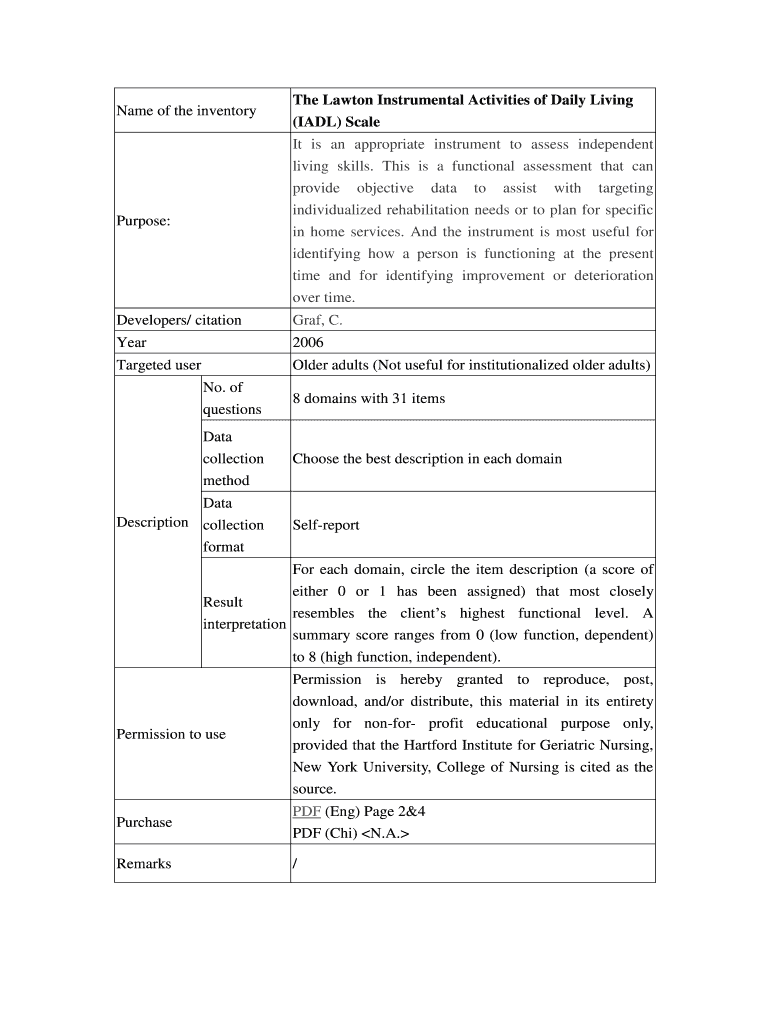 Name of the inventory Lawton Instrumental Activities of Daily Living