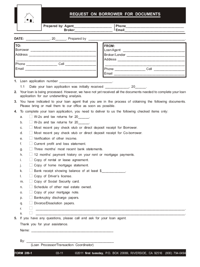 Get the free Loan Application Document Request Form
