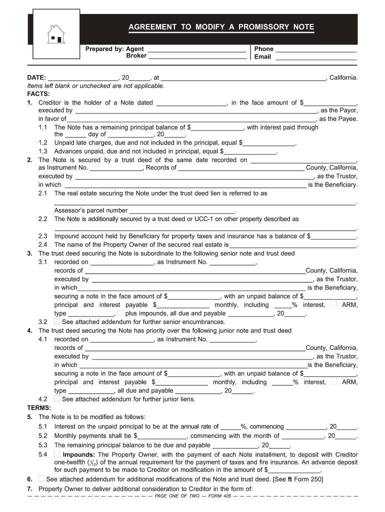 Get the free Agreement to Modify a Promissory Note