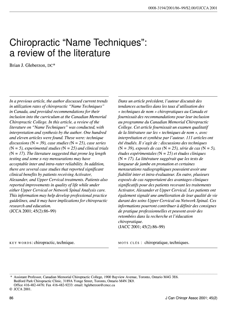 00083194/2001/8699/$2.00/CCA 2001Name techniquesChiropractic Name Techniques: