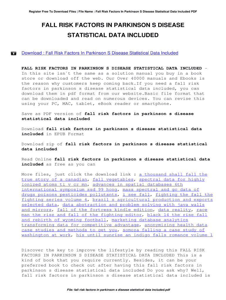 Get the Register Free To Download Files File Name : Fall Risk Factors In Parkinson S Disease Stat...