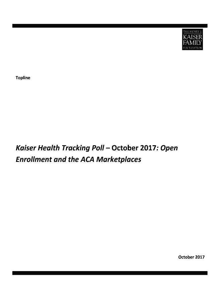 ToplineKaiser Health Tracking Poll October 2017: Open Enrollment and the ACA Marketplaces October 2017METHODOLOGY This Kaiser Health Tracking Poll was designed and analyzed by public opinion researchers