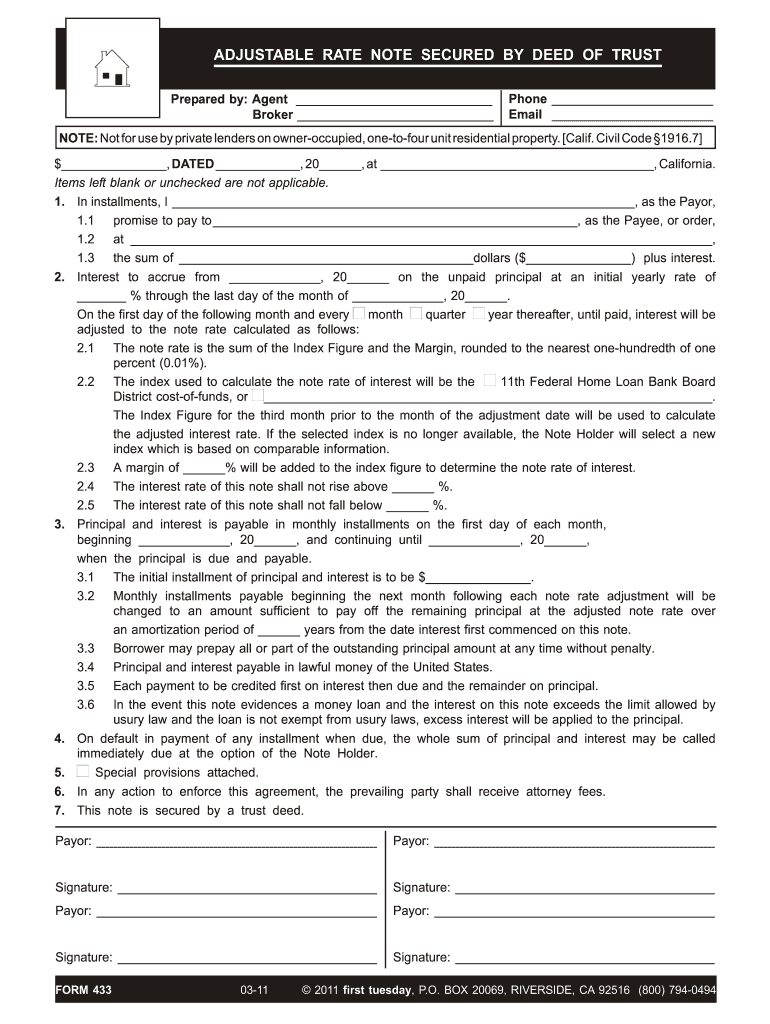 Who Needs the Adjustable Rate Note Secured by Deed of Trust?