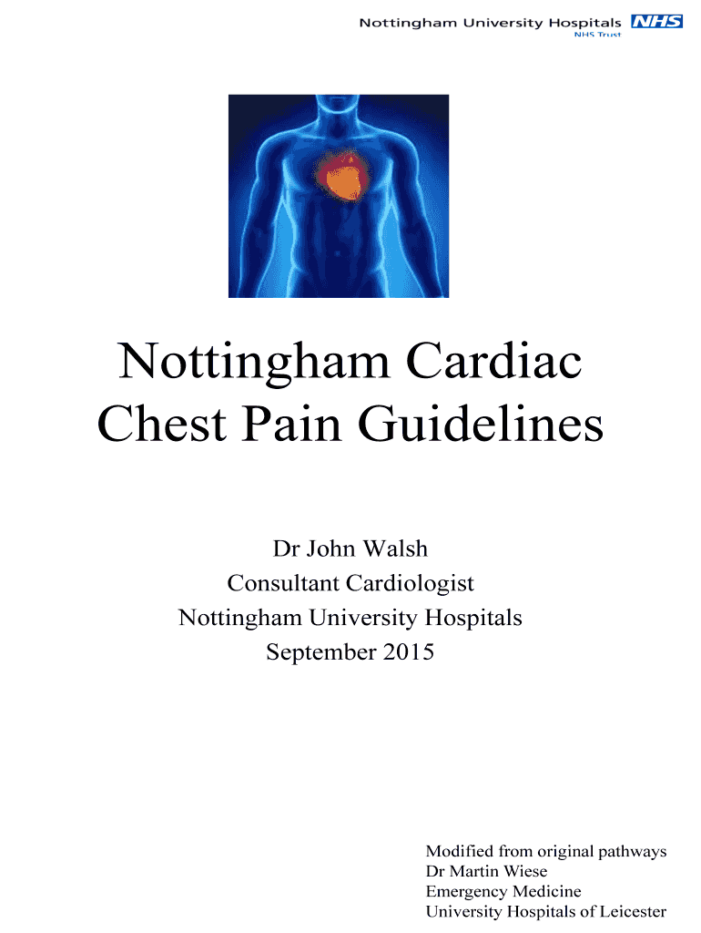 Nottingham Cardiac Chest Pain Guidelines Dr John Walsh Consultant Cardiologist Nottingham University Hospitals September 2015Modified from original pathways Dr Martin Wise Emergency Medicine University