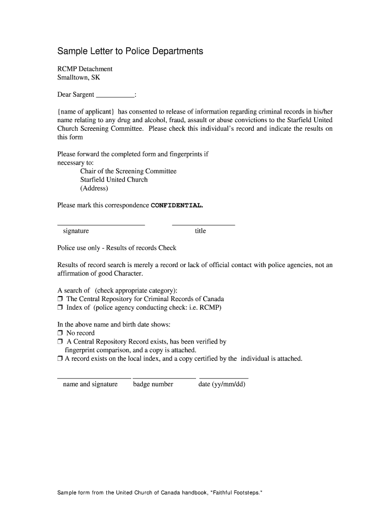 Get the free Sample Letter to Police Department from Faithful Footsteps Screening Procedures - un...