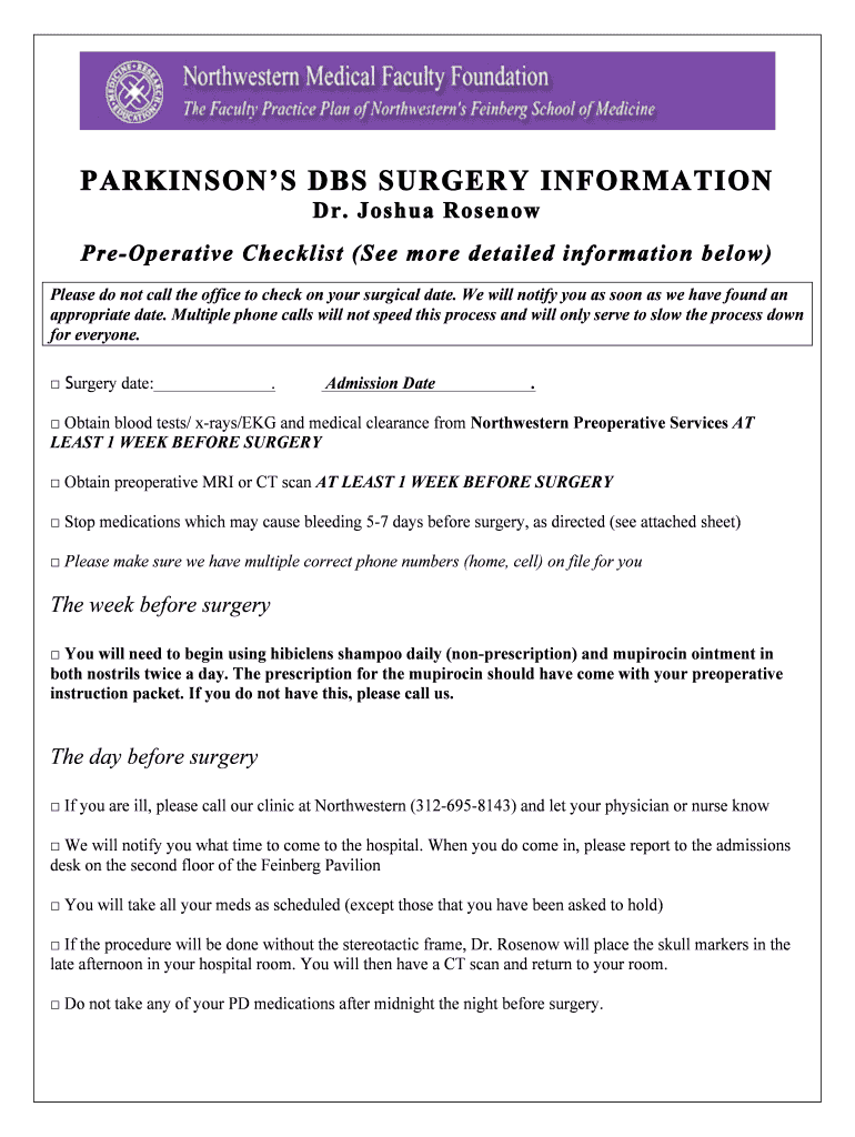 Get the free PARKINSONS DBS SURGERY INFORMATION