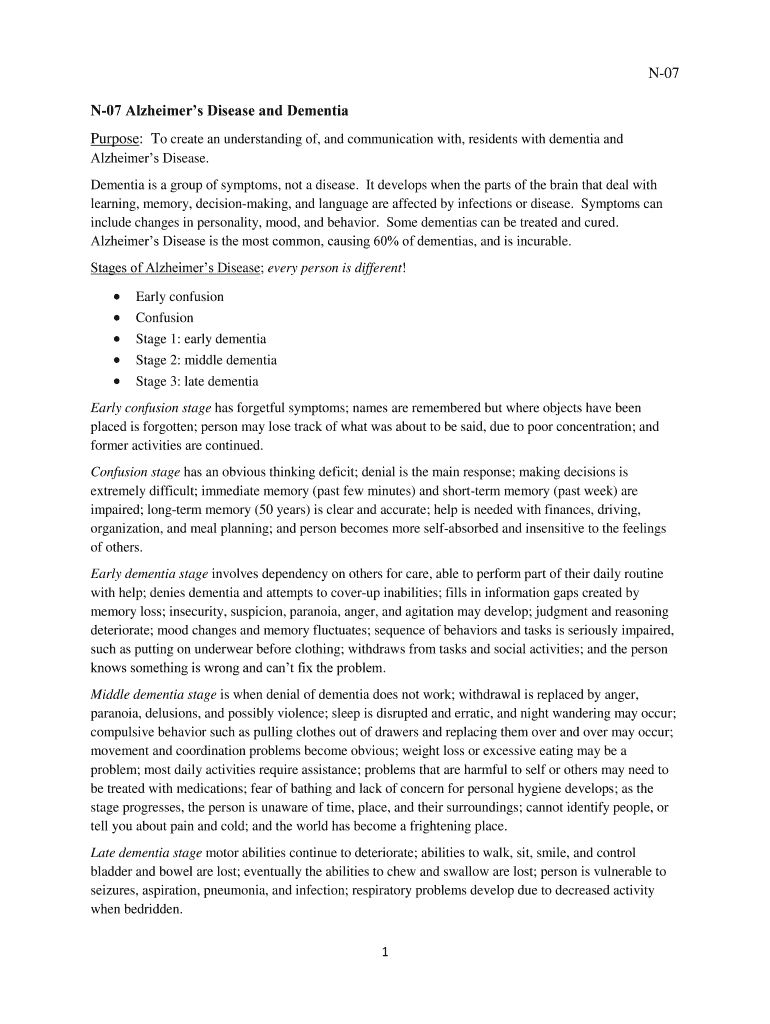 N07 Alzheimer's Disease and Dementia