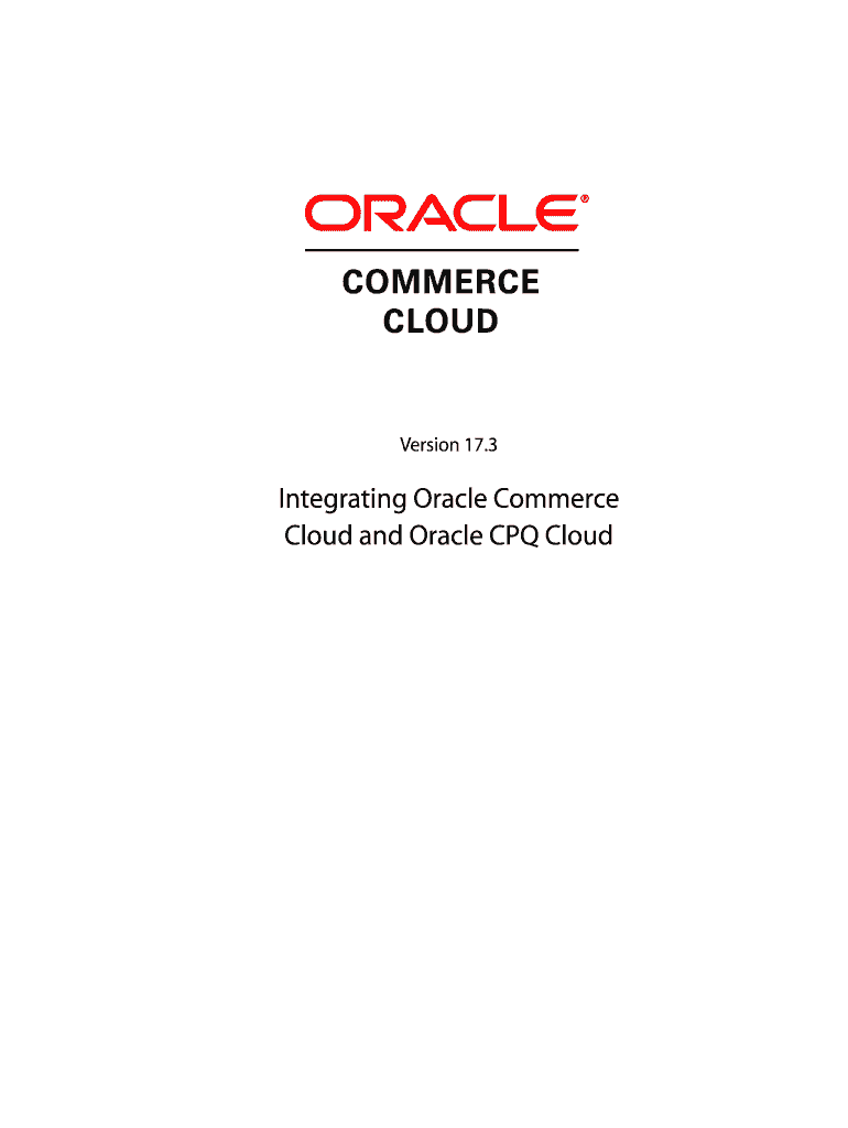 Version 17.3Integrating Oracle Commerce Cloud and Oracle CPQ CloudIntegrating Oracle Commerce Cloud and Oracle CPQ Cloud Product version: 17.3 Release date: 053117 Document identifier: Integcpq1706211602