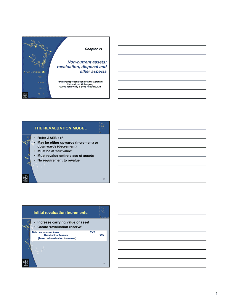Chapter 21Noncurrent assets: revaluation, disposal and other aspects PowerPoint presentation by Anne Abraham University of Wollongong 2009 John Wiley & Sons Australia, Lathe REVALUATION MODEL Refer