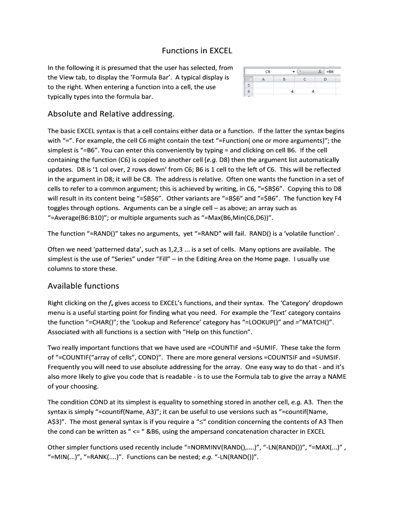 Functions in EXCEL