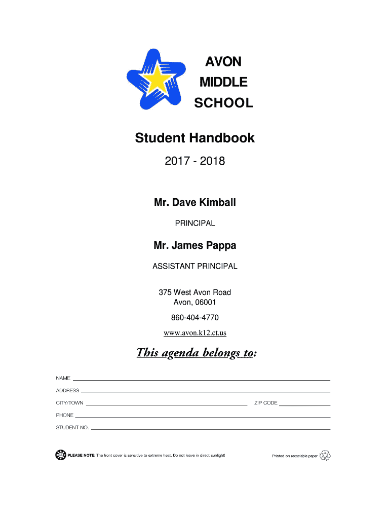 AVON MIDDLE SCHOOL Student Handbook 2017 2018Mr. Dave Kimball PRINCIPAL Mr. James Zappa ASSISTANT PRINCIPAL 375 West Avon Road Avon, 06001 8604044770 www.avon.k12.ct.usAVON MIDDLE SCHOOL AFFIDAVIT
