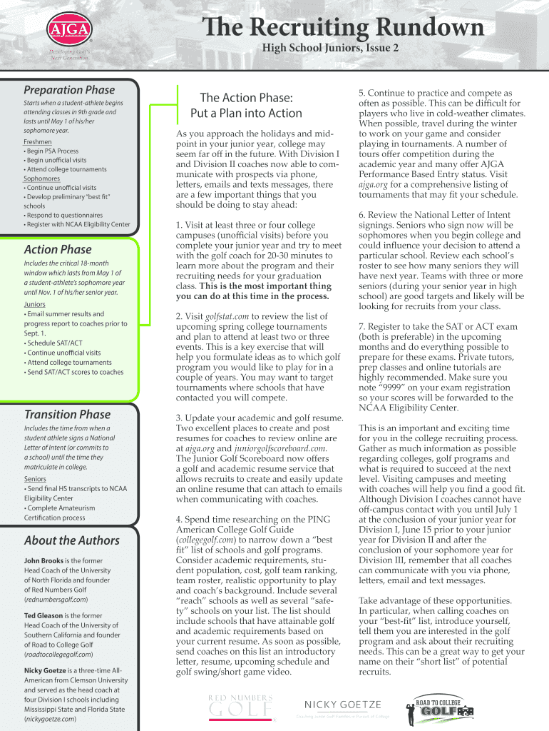 The Recruiting Rundown High School Juniors, Issue 2Preparation Phase Starts when a student athlete begins attending classes in 9th grade and lasts until May 1 of his/her sophomore year. Freshmen Begin