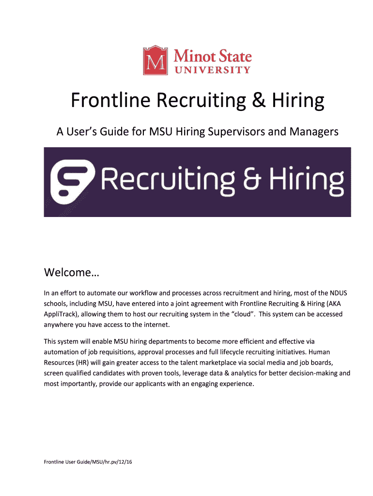 Frontline Recruiting & Hiring A Users Guide for MSU Hiring Supervisors and ManagersWelcome In an effort to automate our workflow and processes across recruitment and hiring, most of the INDUS schools,